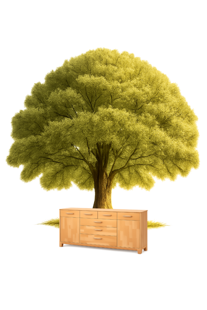 Esche verbindet Eleganz mit Dynamik. Die helle Farbe und die lebhafte Maserung verleihen Möbeln eine moderne, hochwertige Ausstrahlung – besonders bei klaren Linien und großen Flächen.